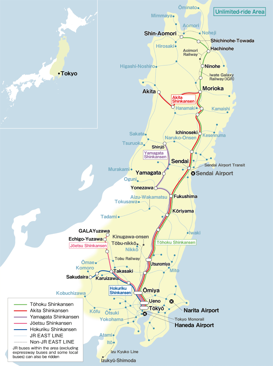 ・Routes covered by the JR EAST Pass(Tohoku area)
