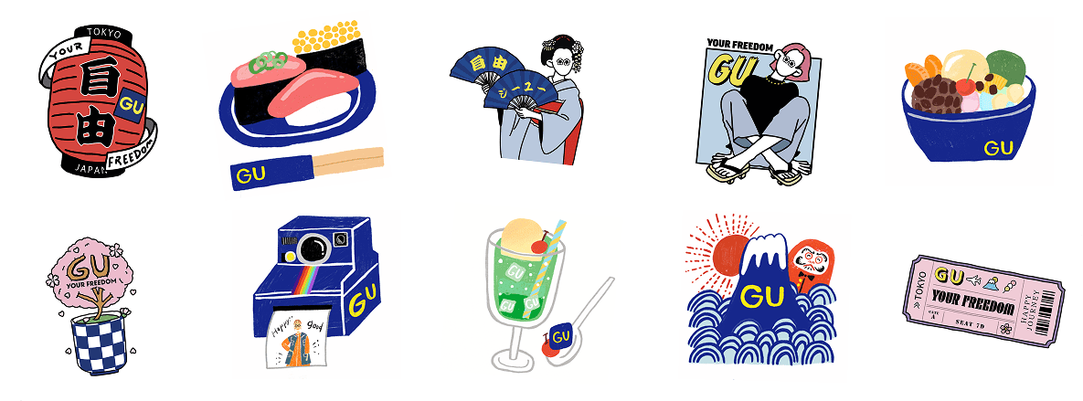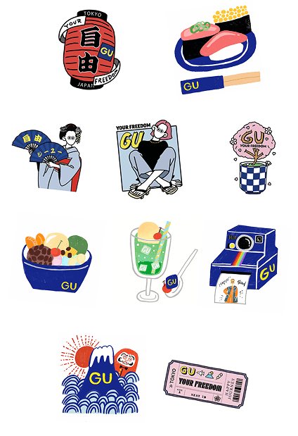 "YOUR FREEDOM The freedom to reinvent yourself." Just by changing clothes, you can change your mood. A positive version of yourself, a version of yourself you've always wanted to be, a version of yourself you've never seen before. Everyone can discover a new version of themselves every day. Seasonal, comfortable clothes. Feel free to wear what you're feeling in the moment. GU is freedom (jiyu in Japanese).