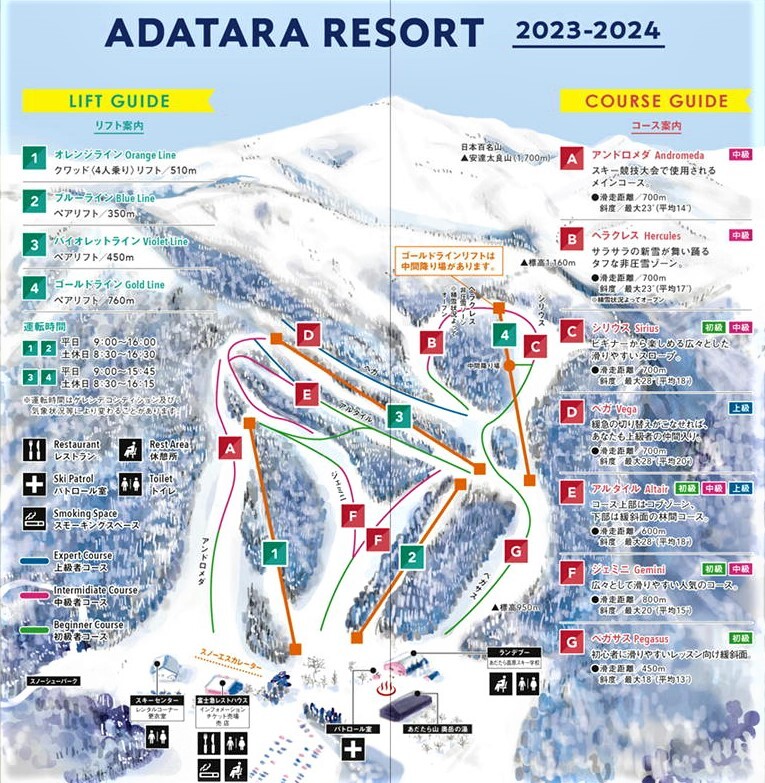 Nestled in the midsection of the renowned Mt. Adatara, one of Japan's 100 Famous Mountains, this ski resort offers exceptional snow quality and five diverse trails to accommodate skiers and snowboarders of all skill levels. Enjoy its convenient location, just a 20-minute drive from the Nihonmatsu Interchange on the Tohoku Expressway. To complete your experience, unwind in the Adatarayama Okudake no Yu day-trip hot spring, located right next to the slopes—perfect for a post-ski soak.