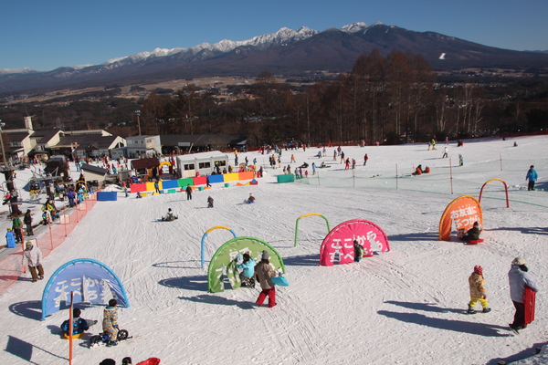 Just about 90 minutes from Tokyo's Hachioji city and only 7 minutes from the Suwa-Minami Interchange on the Chuo Expressway. For those not used to driving, there's no need to worry—free shuttle buses operate daily from JR Fujimi Station. Take the gondola straight up to the summit, where breathtaking views of Mt. Fuji and the Yatsugatake Mountains unfold, and enjoy an exhilarating ride down a 3,000-meter-long trail. With an 85% chance of clear skies, it is perfect for snow activities with family and friends, including a kids' park with plenty of sledding fun and snowshoe trekking up Mt. Nyukasa, which stands at 1,955 meters.