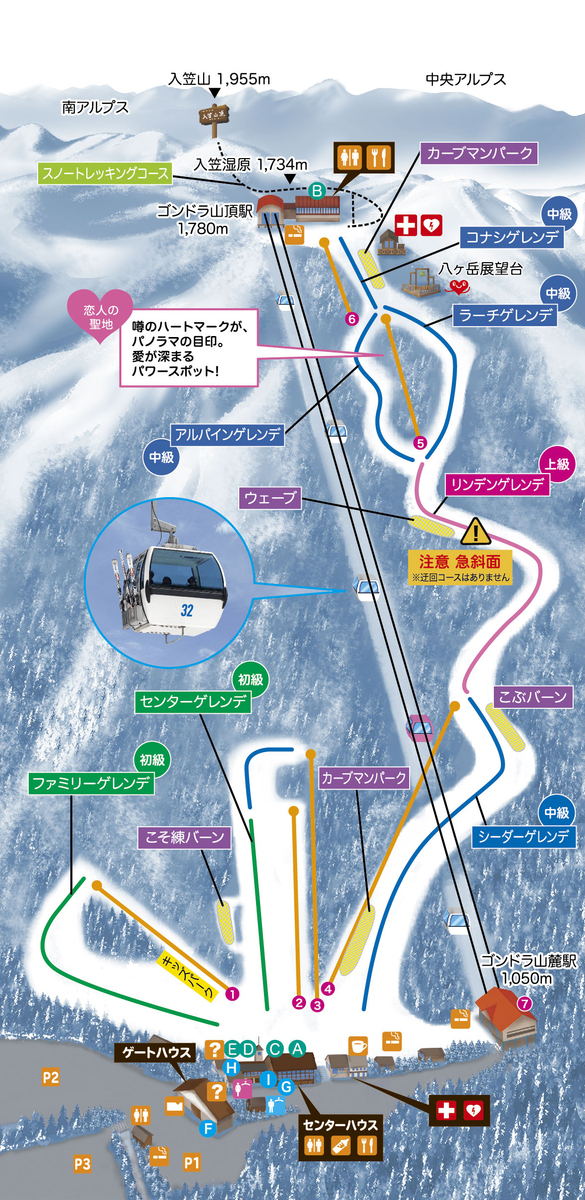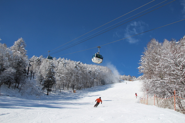 A snow resort with excellent access, 7 minutes from the Suwa Minami Interchange on the Chuo Expressway. You can enjoy the 3,000-meter -ong ski slope with great view from top of gondola and with 85% clear skies rate, you are sure to see Mt. Yatsugatake and Mt. Fuji from the top of the mountain. At a power spot known as the "Lover's Sanctuary" you can deepen your love through its power while skiing. A wide variety of snow activities are available. You can do play in the snow, ski or hike in the mountains, enjoy a beautifully maintained slope for advanced skiers, or snowshoe trek to the top of Mt. Nyukasa. A kids' park for parents and children is also available.