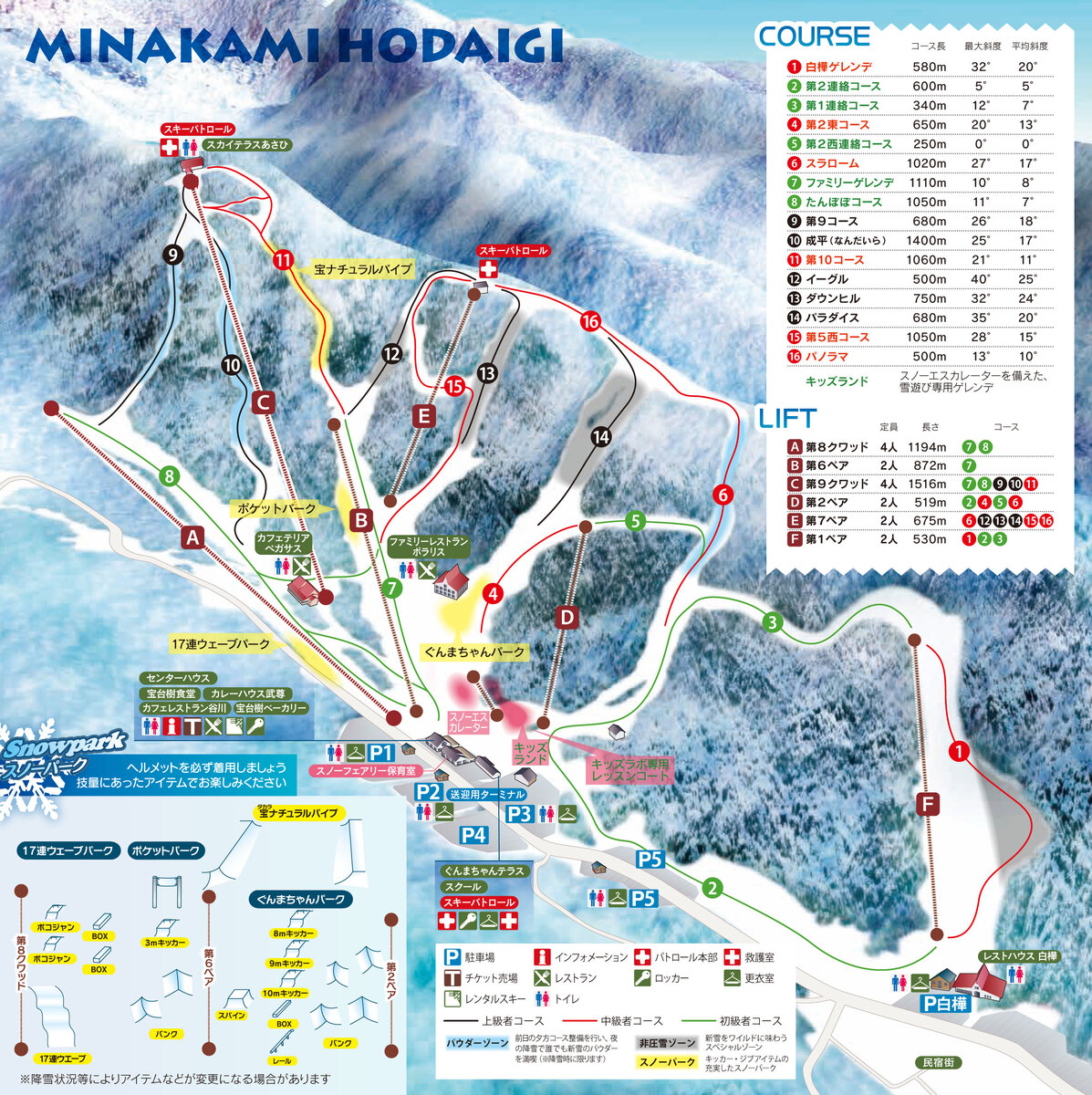 Dec. 13th to Mar. 29th (Schedule is subject to change depending on snow conditions.)Gunma Minakami Hodaigi Ski Resort features 16 diverse trails and is ideal for families with children. The wide variety of runs offers something for everyone—from the scenic, exhilarating Nandaira Trail for intermediate and advanced skiers to two long, gentle slopes perfect for beginners. With a Kids' Land, Kids' School, and Kids' Menu, it's truly a paradise for families. The snow park offers exciting terrain and a range of obstacles for freestyle fun. A free shuttle bus operates on weekends, public holidays, and during the New Year holidays between JR Jomo-Kogen Station, Roadside Station Mizukikokan, Minakami Station, and the resort. Roadside Station Mizukikokan also offers free parking. *Please note that shuttle service may be suspended in the case of an outbreak of infectious diseases.