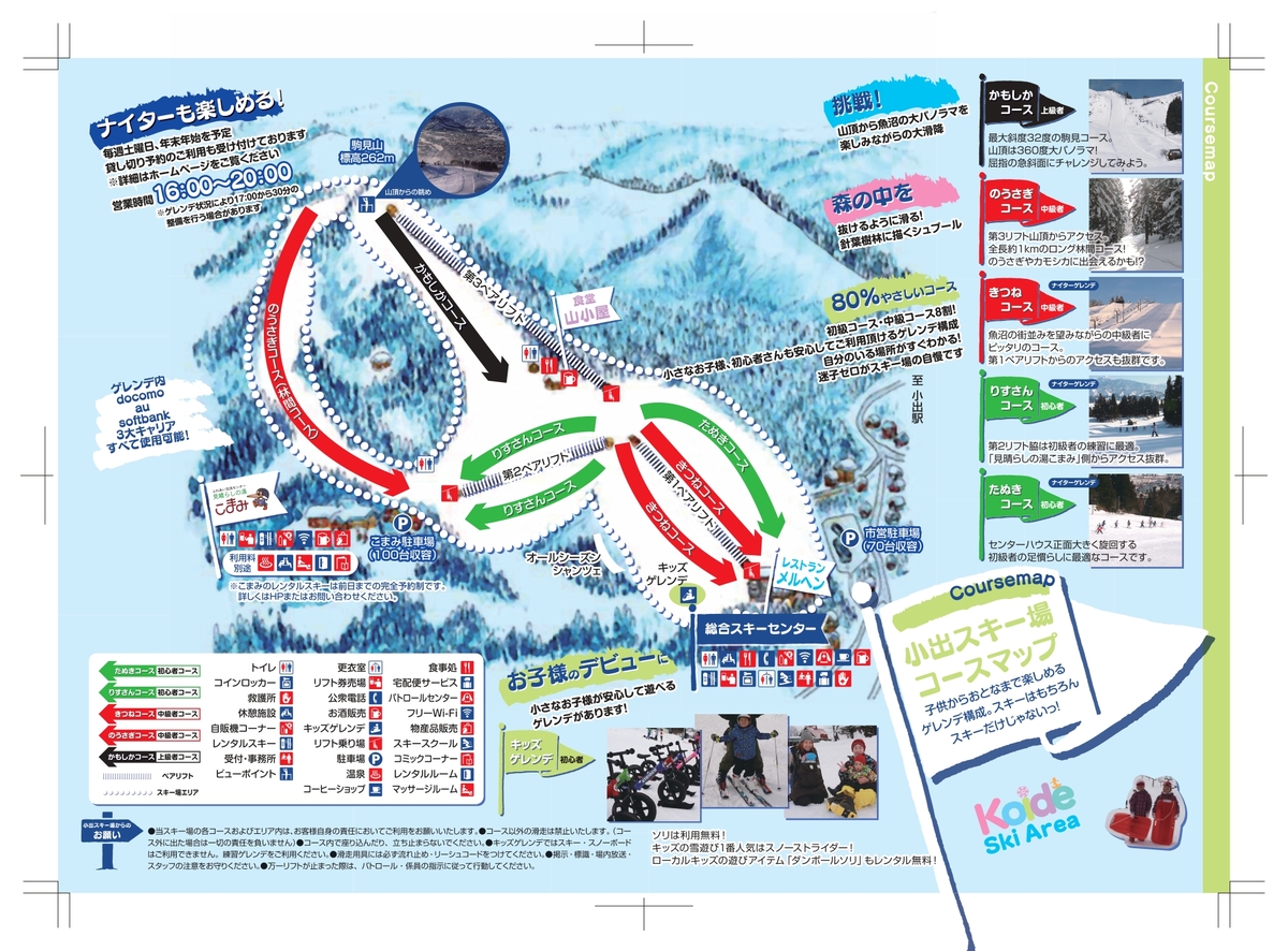 Dec. 15th to Mar. 31st (Schedule is subject to change depending on snow conditions.)Perfect for first-time skiers and snowboarders, this resort offers breathtaking views and a family-friendly atmosphere! After a fun day on the slopes, relax at the nearby Komami Miharashi-no-Yu hot spring, just a one-minute walk from the ski area.