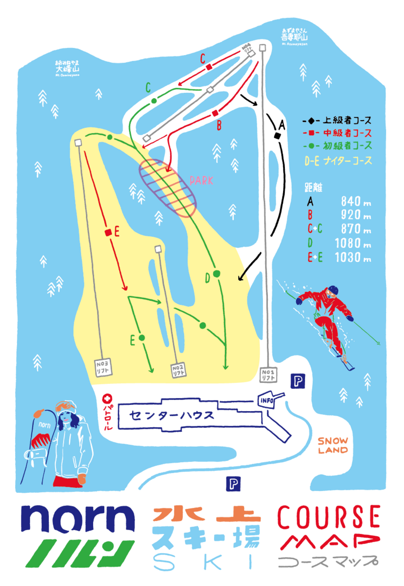 Located approximately 95 minutes from the city center, this ski resort offers excellent accessibility with a complimentary shuttle bus service from the nearest station. During the night skiing season, the resort operates until 10:00 PM, allowing for a full day of enjoyment. The slopes, serviced by a high-speed quad lift, provide a diverse range of skiing experiences suitable for all skill levels, from beginners to advanced skiers. The ascent to the summit, at an elevation of 1,220 meters, is worthwhile for the breathtaking views of Japan's 100 most famous mountains, including Mt. Asama, Mt. Akagi, and Mt. Nikko-Shirane. Additionally, the resort features a variety of snow parks, catering to both beginners and those looking to practice their skills, making it a popular destination for snowboarders as well. With comprehensive rental services available, visitors can enjoy the snow resort empty-handed!