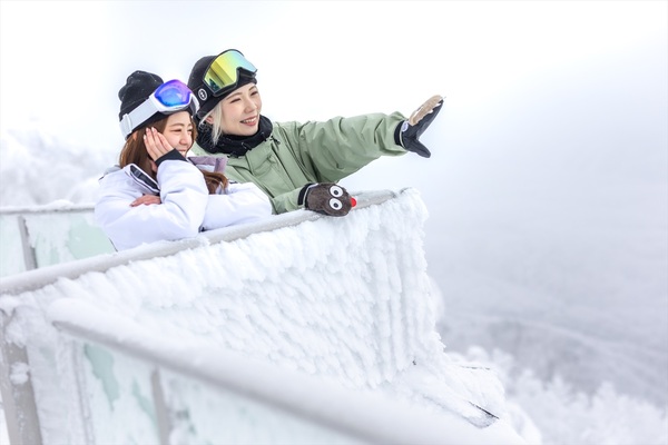 The best ski resort in Japan for first-time snowboarders! Ryuoo Ski Park is committed to holding free snowboarding lessons for complete first timers every day! We also offer free helmet rental! The resort features a wide variety of slopes, from flat and wide zones to powder zones! There is a superb powder trail at the top of the mountain that even beginners can enjoy, as well as a trail on which you can ski while enjoying the spectacular view of the trees coated in ice (Snow Monsters). In addition, there is the "SORA Terrace sightseeing plan with snow buggy cruise" that allows you to enjoy the spectacular snow-blanketed scenery even if you don't want to ski! Enjoy a relaxing café time at SORA Terrace and the SORA Terrace Cafe, where you can enjoy views of the Northern Alps and the Sea of Japan!