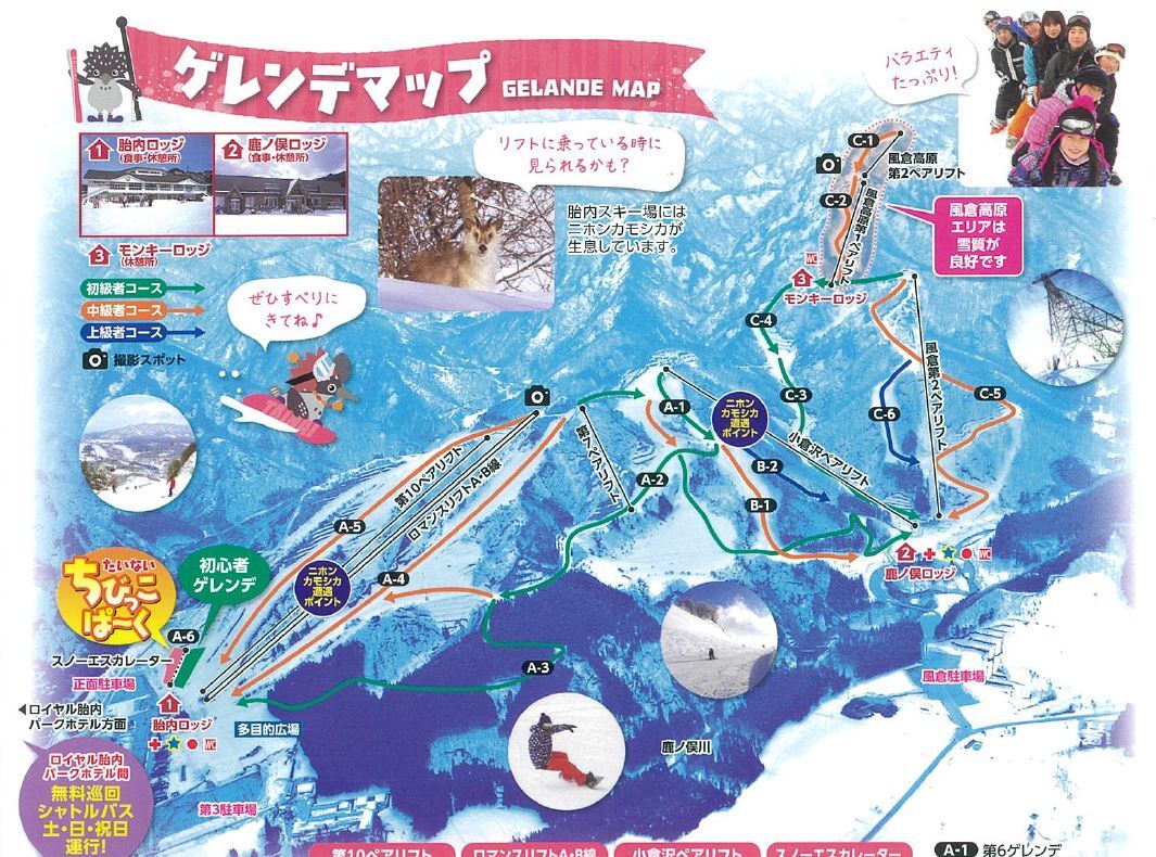 A ski and snowboard resort in Tainai City, Niigata Prefecture. Ski lifts are free for elementary school students and under every Sunday on “Ski Children’s Day." Offers excellent access, about a 20-minute drive or cab ride from JR Nakajo Station and a 25-minute drive from the Nakajo Interchange on the Nihonkai-Tohoku Expressway.